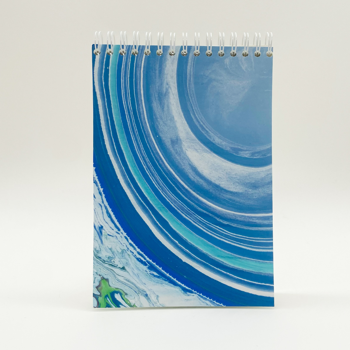 A handy notebook for your lists and thoughts with easy to tear pages. The front cover is hand marbled and therefore one of a kind. The back cover has a sturdy greyboard, whiteboard or a white cardboard with BLANKBOOK embossed. The inlay has around 60 pages of 115 gsm smooth warm white paper saved from a printshop.
