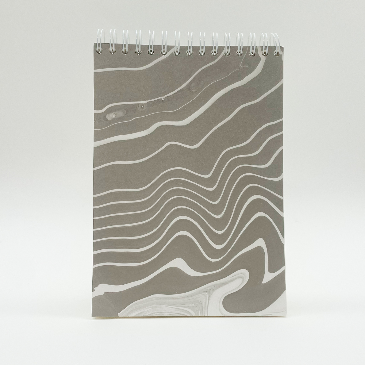 A handy notebook for your lists and thoughts with easy to tear pages. The front cover is hand marbled and therefore one of a kind. The back cover has a sturdy greyboard, whiteboard or a white cardboard with BLANKBOOK embossed. The inlay has around 60 pages of 115 gsm smooth warm white paper saved from a printshop.