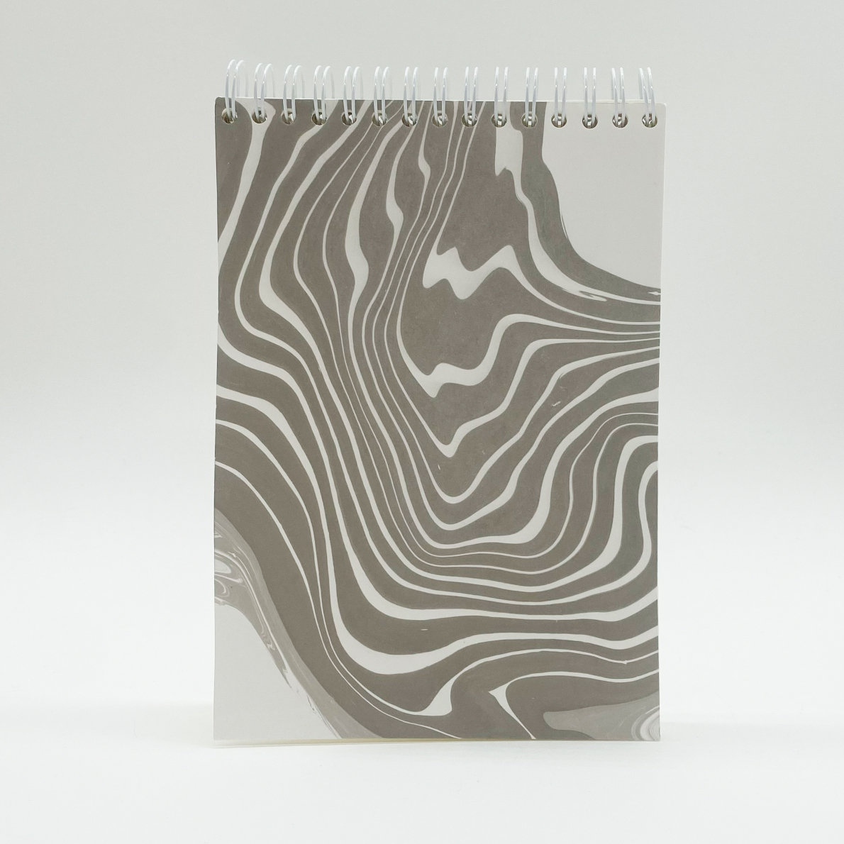 A handy notebook for your lists and thoughts with easy to tear pages. The front cover is hand marbled and therefore one of a kind. The back cover has a sturdy greyboard, whiteboard or a white cardboard with BLANKBOOK embossed. The inlay has around 60 pages of 115 gsm smooth warm white paper saved from a printshop.
