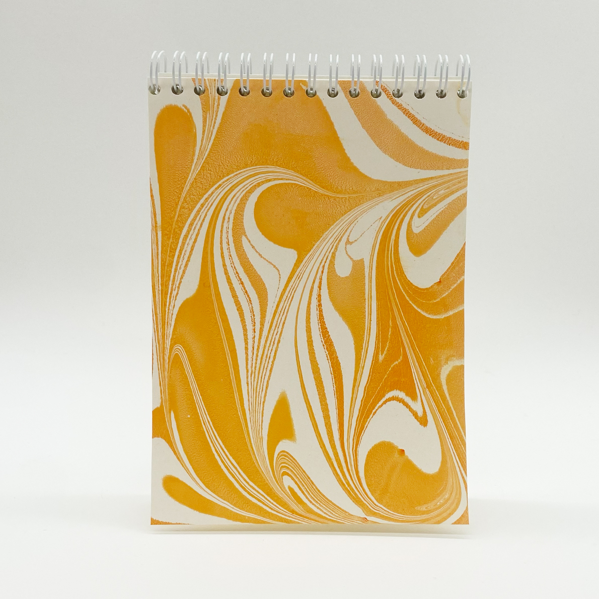 A handy notebook for your lists and thoughts with easy to tear pages. The front cover is hand marbled and therefore one of a kind. The back cover has a sturdy greyboard, whiteboard or a white cardboard with BLANKBOOK embossed. The inlay has around 60 pages of 115 gsm smooth warm white paper saved from a printshop.